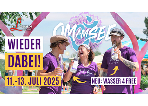 GOOD NEWS: Ihr findet heuer das „Wasser 4 Free“ – St. Leonhards Ich bin die Quelle – Sonnenquelle – Mondquelle und Lichtquelle - an verschiedenen Ausgabeplätzen auf dem Festivalgelände. Bitte bedient Euch und hydriert Euch gut vor all Euren Yoga- und Meditations-Sessions. Wir danken Euch, wenn ihr das Leergut anschließend wieder an die Stationen zurück bringt.